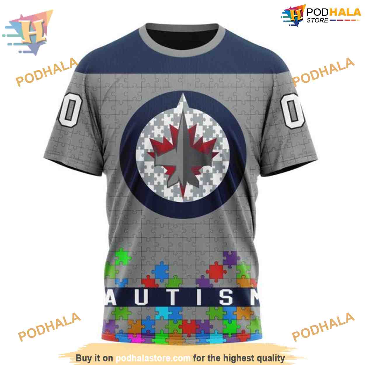 Custom Unisex Hockey Fights Against Autism NHL Winnipeg Jets Hoodie 3D