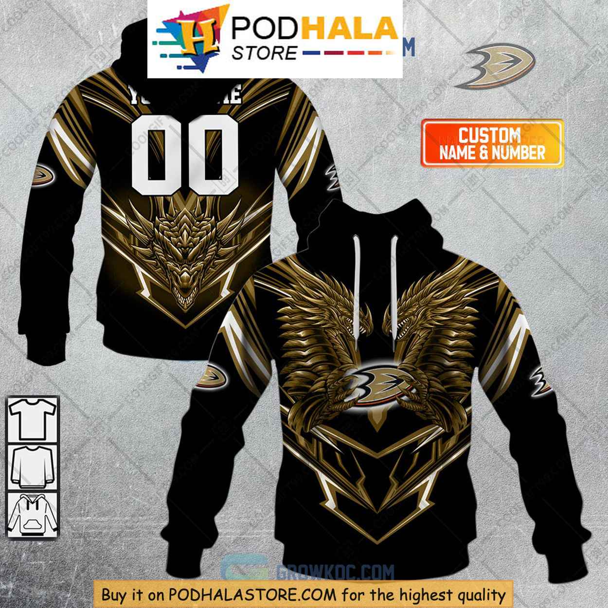 Customizable Anaheim Ducks Hoodie with 3D Dragon, Personalized Name
