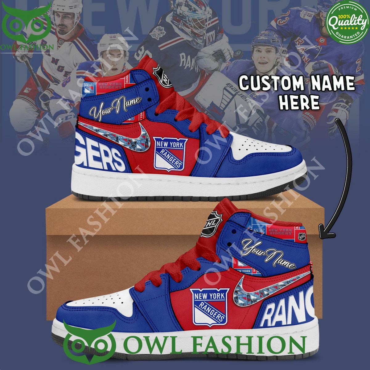 What sets these sneakers apart is the option for customization. With the ability to add your name or any text of your choosing, these shoes become a truly unique and individualized expression of your fandom. Whether you want to proudly display your own name or pay homage to your favorite Rangers player, these custom sneakers allow you to make a personal connection with the team like never before.