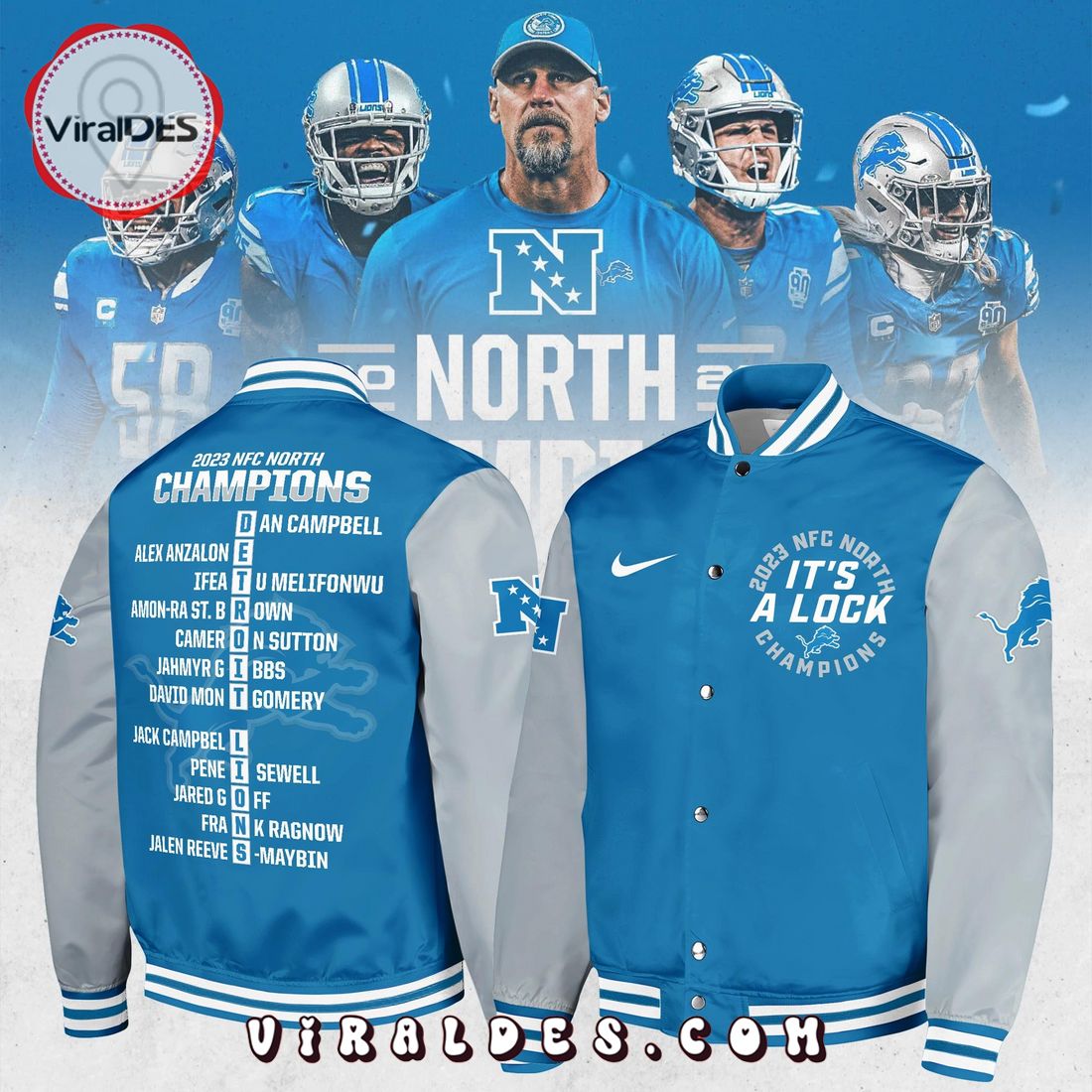 Detroit Lions 2023 It’s A Lock Champions Blue Baseball Jacket