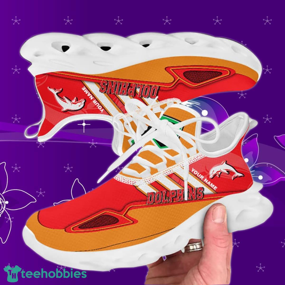 This Dolphins NRL Max Soul Custom Name Special Gift Men And Women For Fans is a breathable, lightweight, and comfortable casual outdoor shoe that has a unique design. It is made of a mesh fabric which makes it sweat absorbent and breathable, while the rubber bottom ensures traction, comfort, and durability. It is available in two colors: black or white sole. There are two styles of shoelace holes so you can choose your preference.