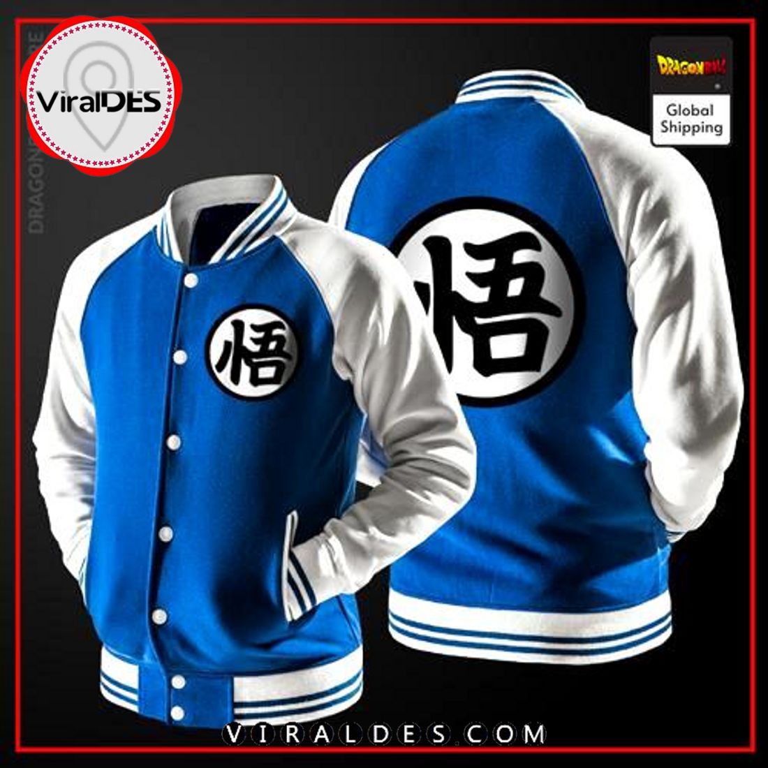 Dragon Ball Kanji Go Navy Baseball Jacket