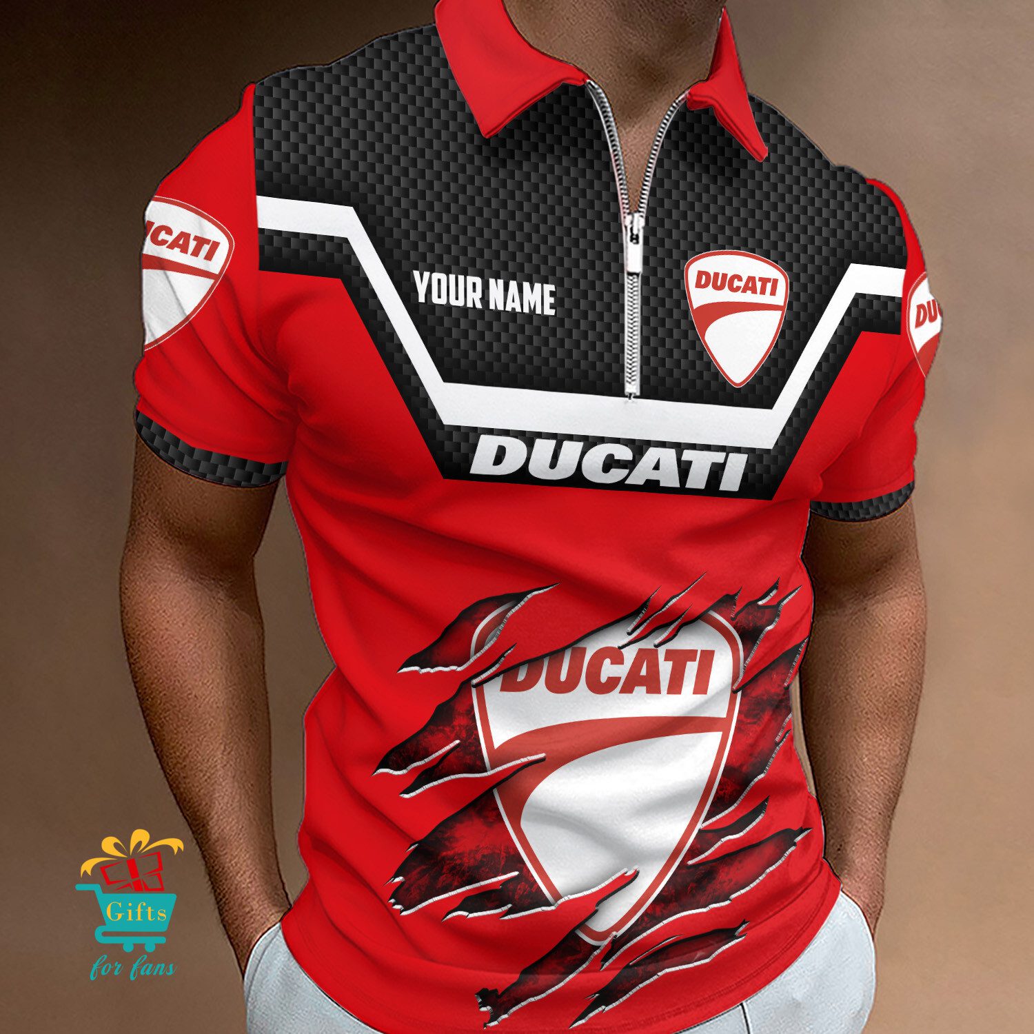 Ducati Custom Name New Design Zipper Polo Shirt