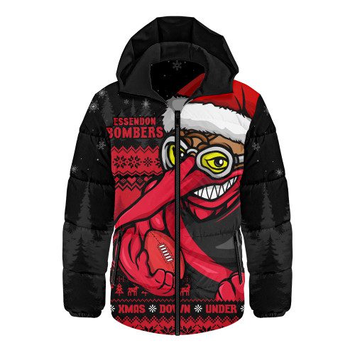 Essendon Hooded Padded Jacket Merry Christmas Down Under Footy Power Style