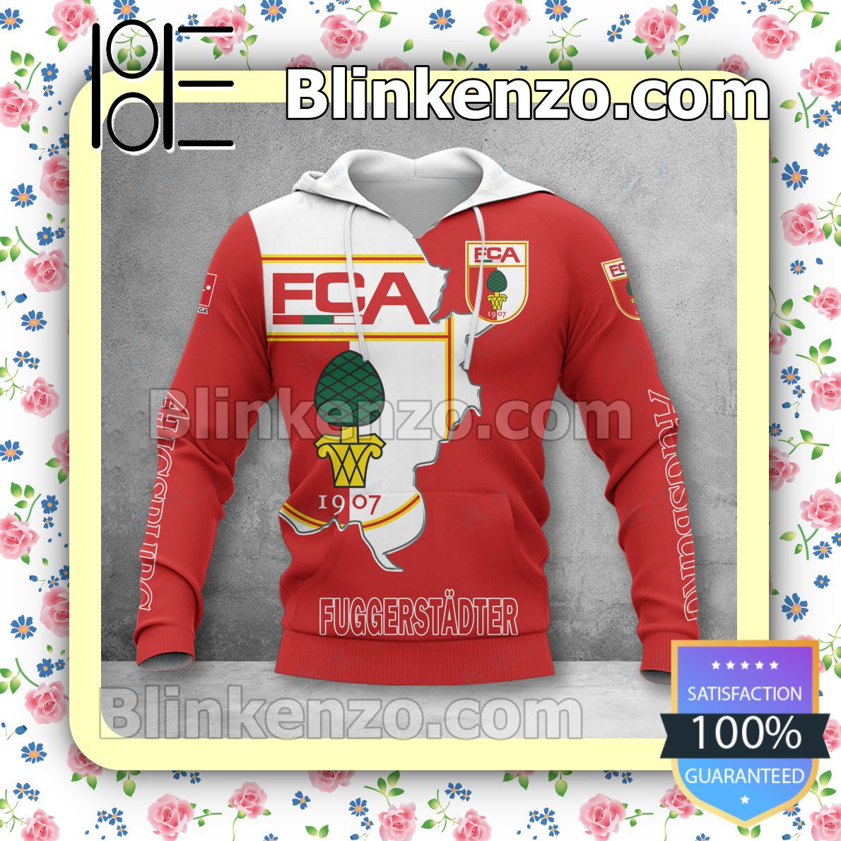 FC Augsburg Red Pullover Hoodie Product Features Along with its FC Augsburg graphics, this cozy pullover hoodie features super-soft midweight material. Material: 95% polyester + 5% spandex. The fabric is durable and resistant to wrinkles, shrinking and mildew. Hood with drawstrings. Long sleeve. Front pouch pocket. Midweight hoodie suitable for moderate temperatures. Features a specialty...
