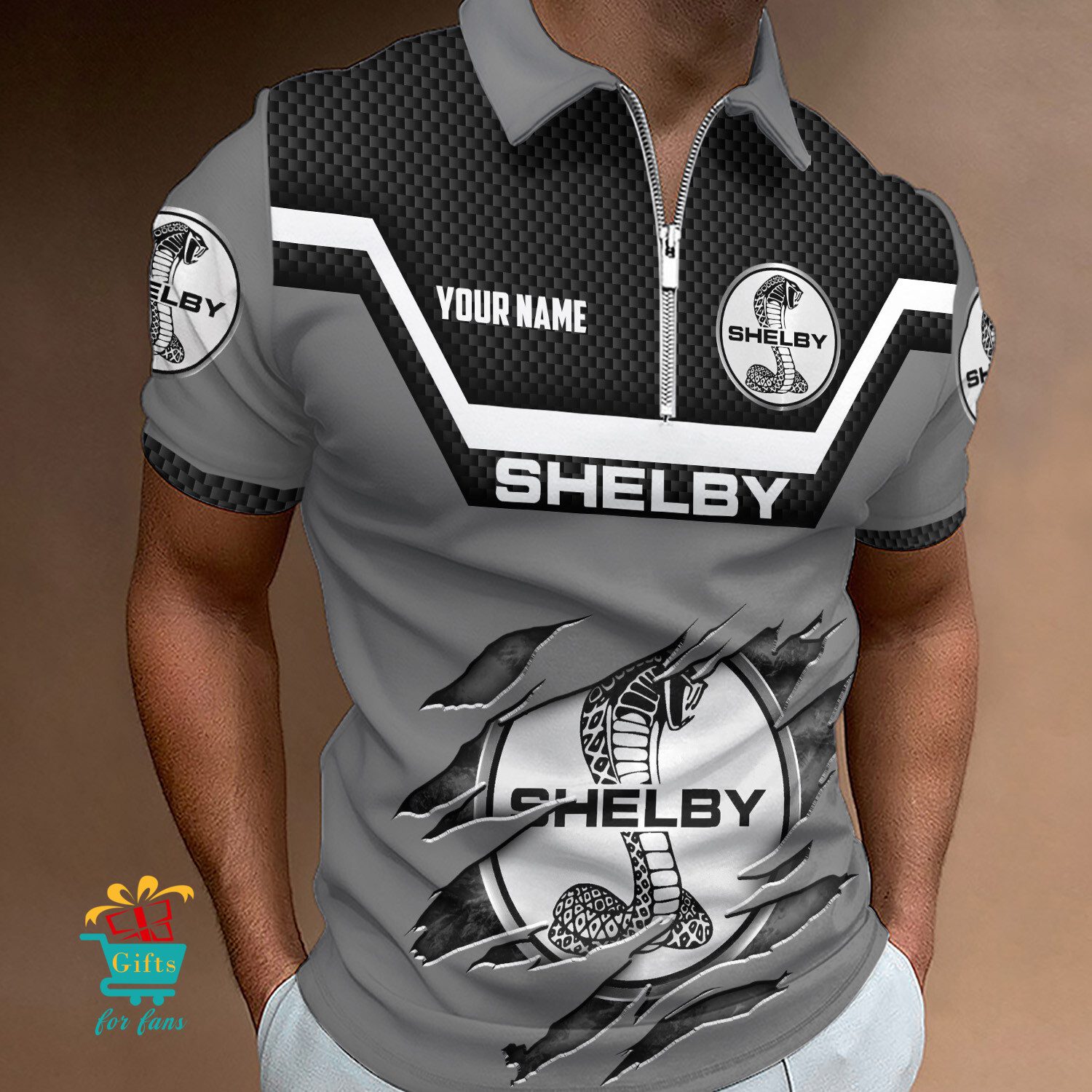 Ford Shelby Custom Name New Design Zipper Polo Shirt