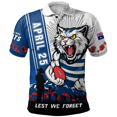 Geelong Cats Polo Shirt Anzac Day Lest We Forget Memorial