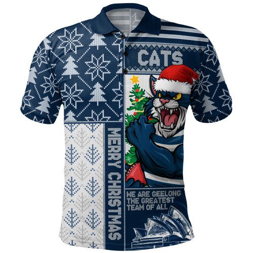 Geelong Cats Polo Shirt Merry Christmas Knit Style Festive Spirit
