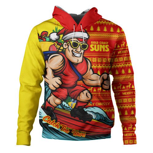 Gold Coast SUNS Hoodie Christmas Holiday Santa Rides The Waves