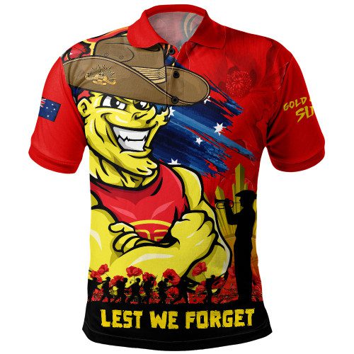 Gold Coast SUNS Polo Shirt ANZAC Inspired Football Fan Memorial Design