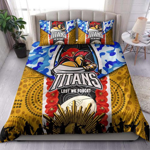 Gold Coast Titans Anzac Aboriginal Inspired Bedding Set – Gold Coast Titans with Poppy Watercolor Flower Bedding Set