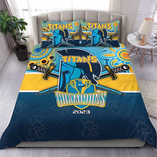 Gold Coast Titans Bedding Set Talent Win Games But Teamwork And Intelligence Win Championships With Aboriginal Style