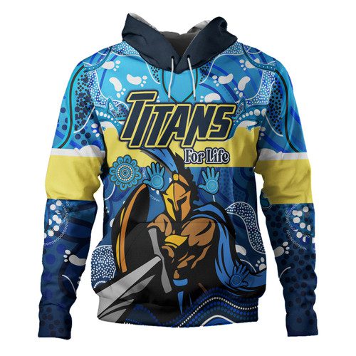 Gold Coast Titans Custom Hoodie – Gold Coast Titans For Life With Aboriginal Style Hoodie