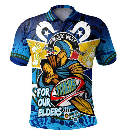 Gold Coast Titans Naidoc Week Custom Polo Shirt – Gold Coast Titans Naidoc Week For Our Elders Dot Art Style Polo Shirt