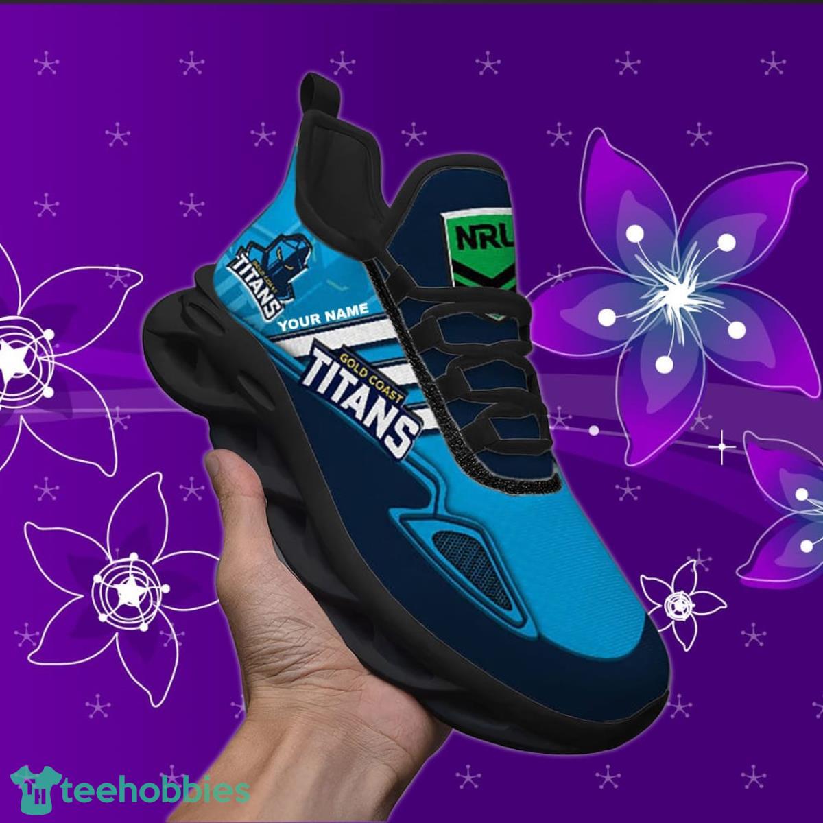 This Gold Coast Titans NRL Max Soul Custom Name Style Gift Men And Women For Fans is a breathable, lightweight, and comfortable casual outdoor shoe that has a unique design. It is made of a mesh fabric which makes it sweat absorbent and breathable, while the rubber bottom ensures traction, comfort, and durability. It is available in two colors: black or white sole. There are two styles of shoelace holes so you can choose your preference.