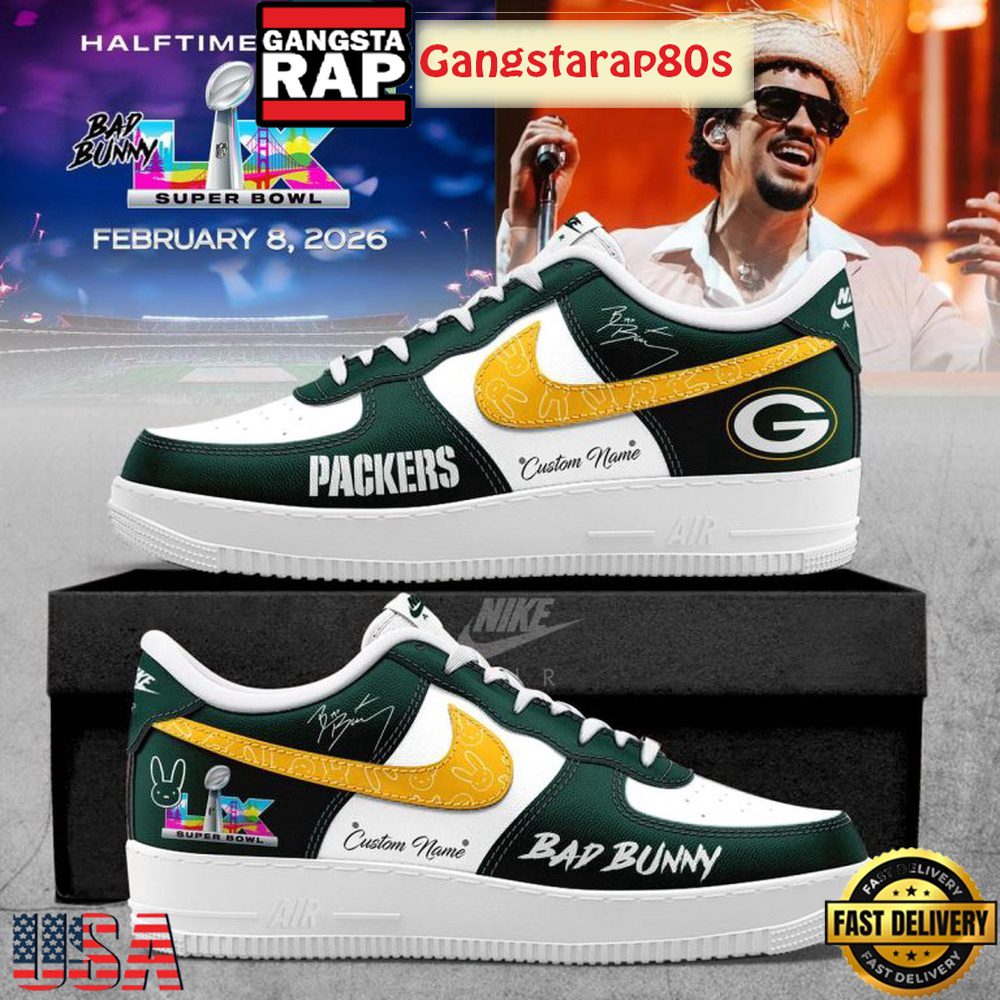 Photos Of Green Bay Packers NFL Bad Bunny Super Bowl LX 2026 Custom Air Force 1 Sneakers Shoes