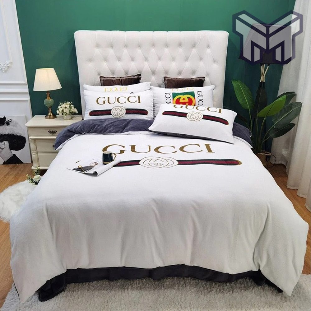 Gucci Bedding Set, Gucci Amazing White Fashion Logo Luxury Brand Bedding Set Home Decor Information: