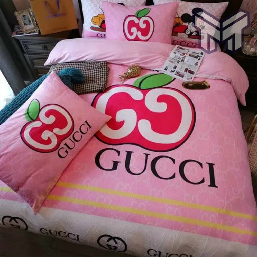 Gucci Bedding Set, Gucci Apple Mickey Mouse Luxury Brand Bedding Set Bedspread Duvet Cover Set Home Decor