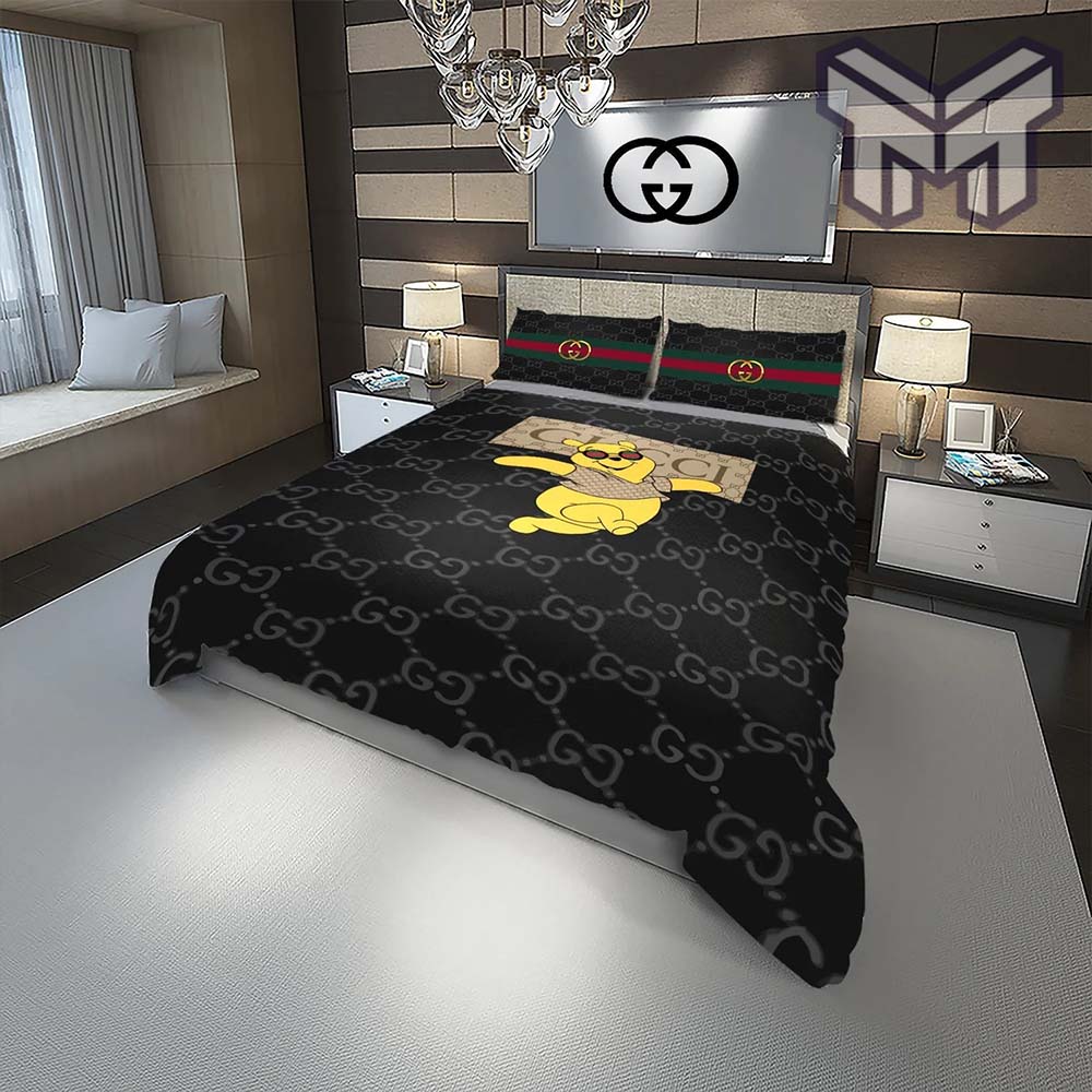 Gucci Bedding Set, Gucci Bear Fashion Logo Luxury Brand Premium Bedding Set Home Decor Information: