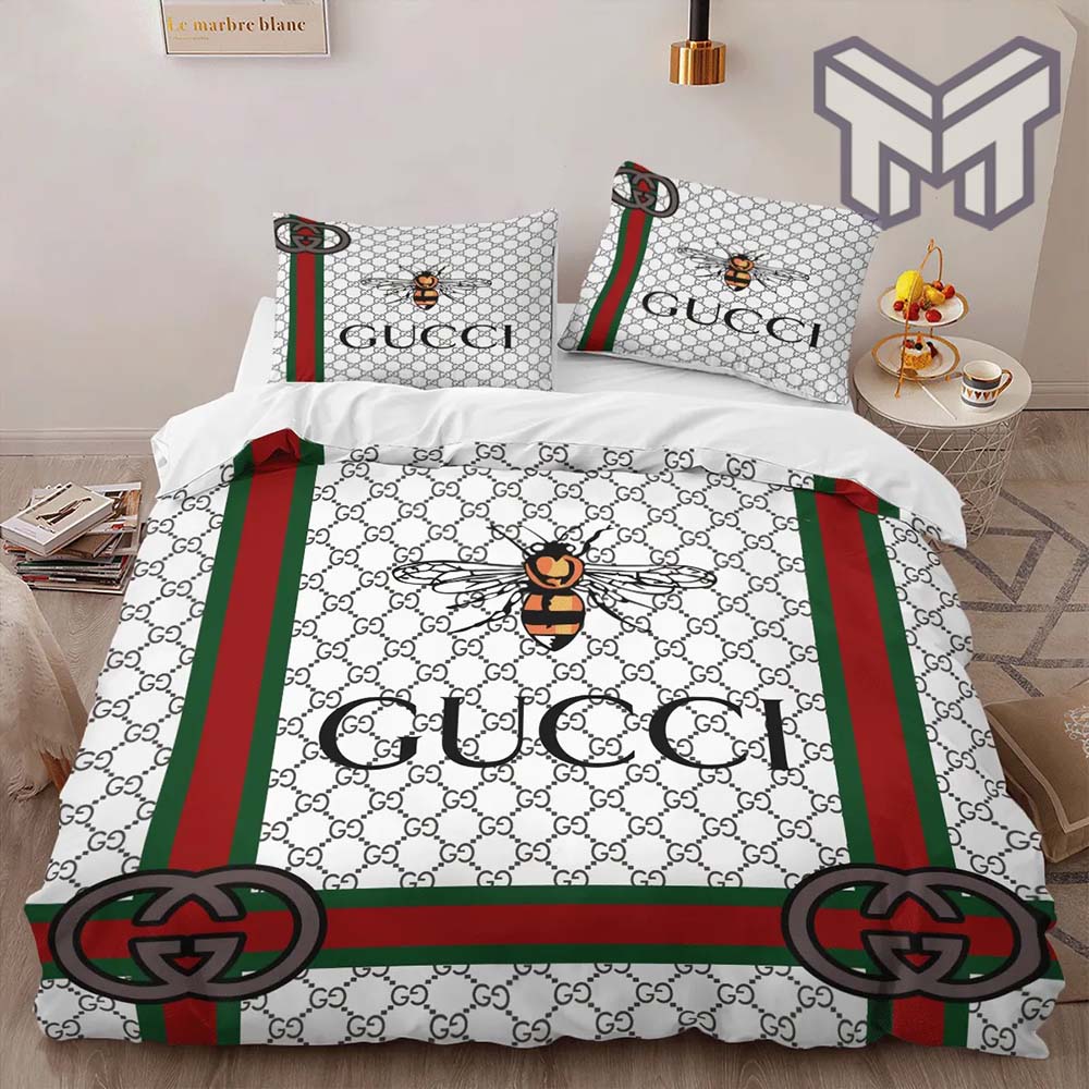Gucci Bedding Set, Gucci Bee White Luxury Brand High-End Bedding Set Home Decor