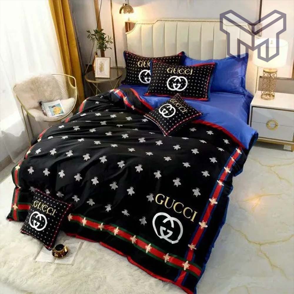 Gucci Bedding Set, Gucci Bees Black Luxury Brand Premium Bedding Set Bedspread Duvet Cover Set Home Decor