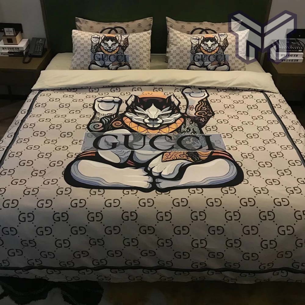 Gucci Bedding Set, Gucci Beige Luxury Brand Bedding Set Home Decor, The Best Quantity and Service:
