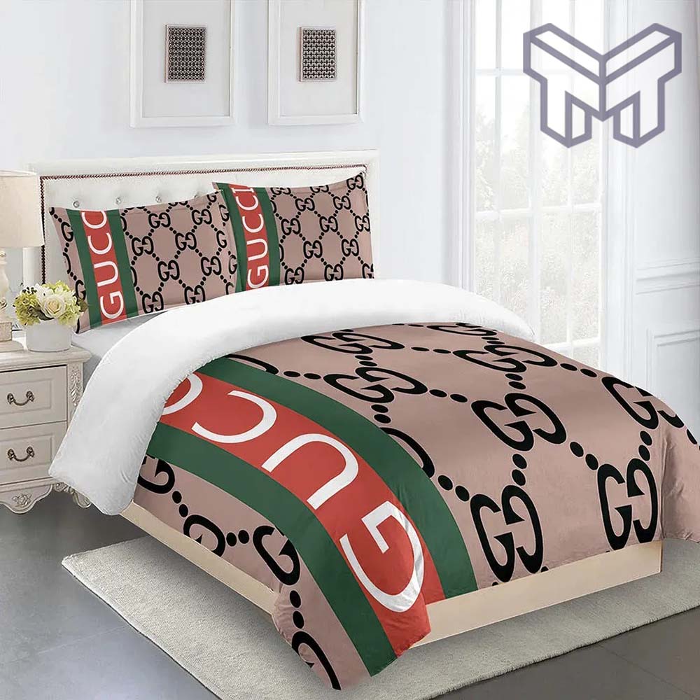 Gucci Bedding Set, Gucci Brown Premium Luxury Brand Fashion Bedding Set Home Decor, The Best Quantity and Service: