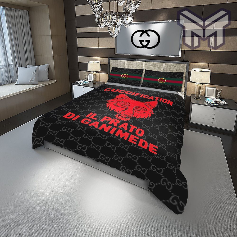 Experience the epitome of luxury with the Gucci Bedding Set. Elevate your home decor to new heights and indulge in the world of Guccification fashion. Order now and embrace the elegance that only Gucci can provide.