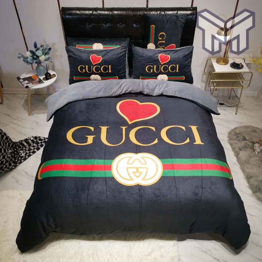 Gucci Bedding Set, Gucci Heart Black Luxury Brand Premium Bedding Set Duvet Cover Home Decor Information: