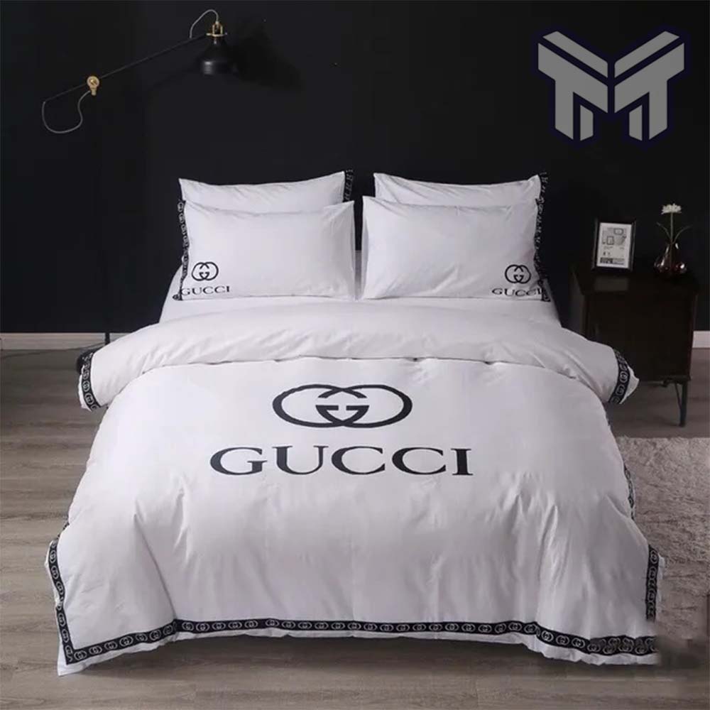 Gucci Bedding Set, Gucci Luxury Brand White Bedding Set Bedspread Duvet Cover Set Home Decor, The Best Quantity and Service: