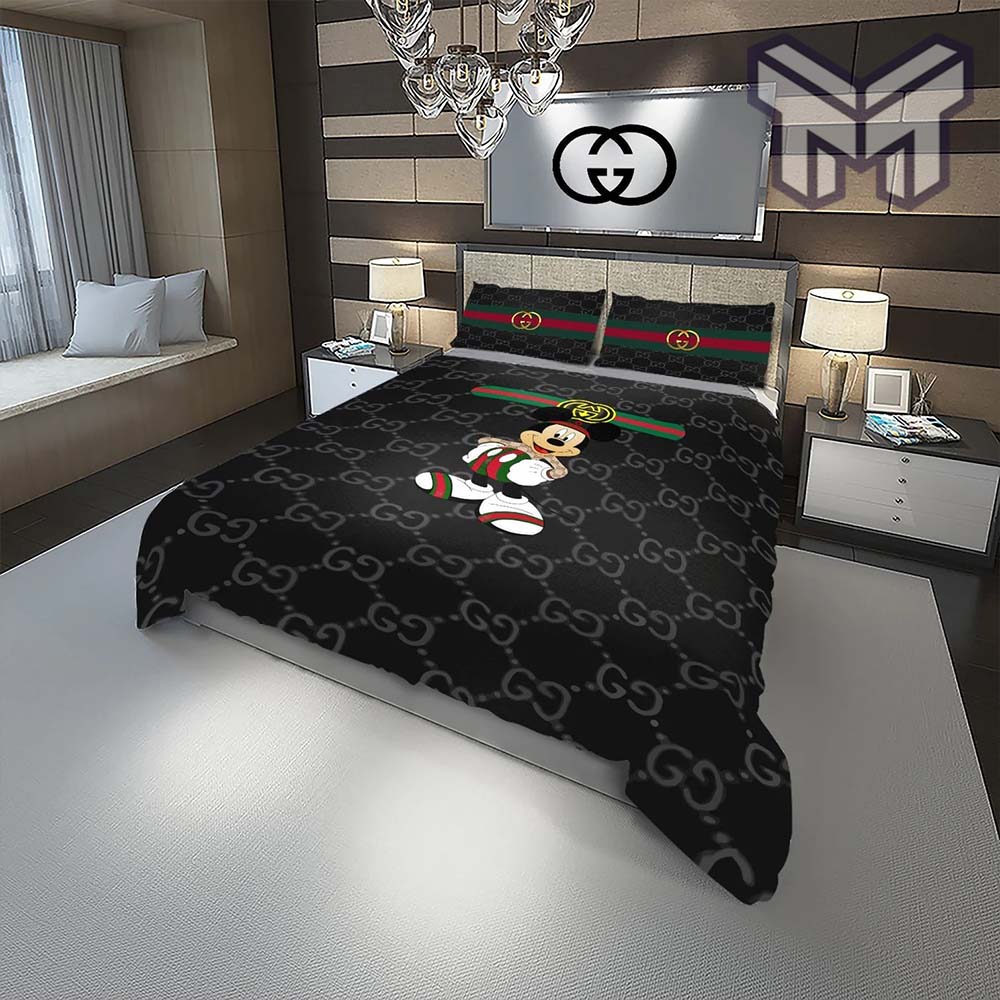 Gucci Bedding Set, Gucci Mickey Black Fashion Logo Luxury Brand Bedding Set Home Decor Information: