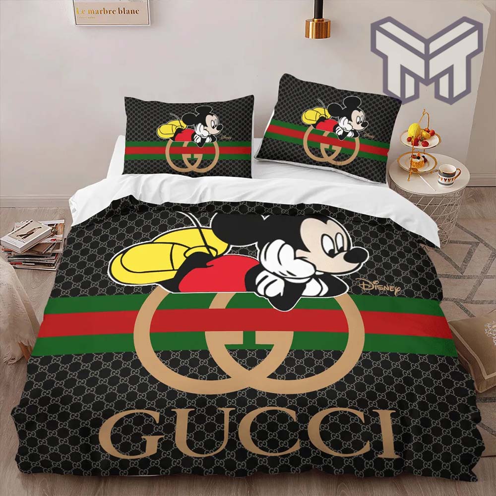 Gucci Bedding Set, Gucci Mickey Mouse Luxury Brand High-End Bedding Set Disney Gifts Home Decor, The Best Quantity and Service: