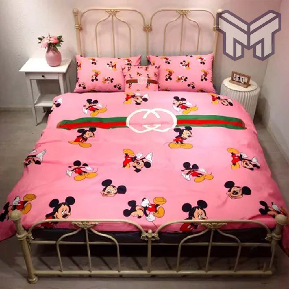 Gucci Bedding Set, Gucci Micky Mouse Pink Luxury Brand Bedding Set Bedspread Duvet Cover Set Home Decor, The Best Quantity and Service: