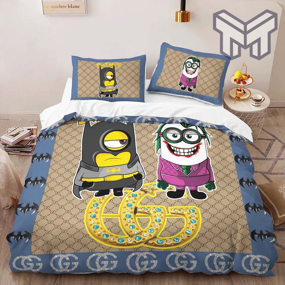 Gucci Bedding Set, Gucci Minions Batman Jocker Luxury Brand High-End Bedding Set Home Decor
