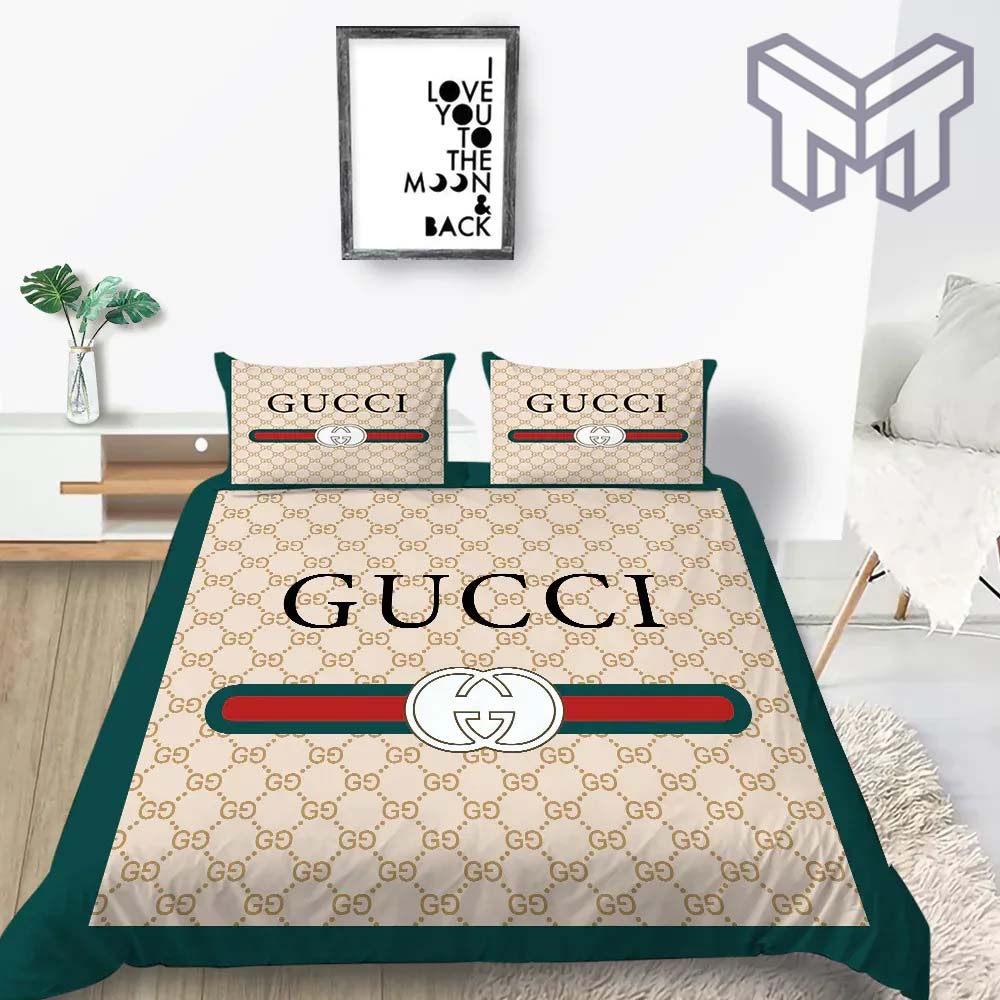 Gucci Bedding Set, Gucci New Logo Luxury Fashion Brand Bedding Set Bedspread Duvet Cover Set