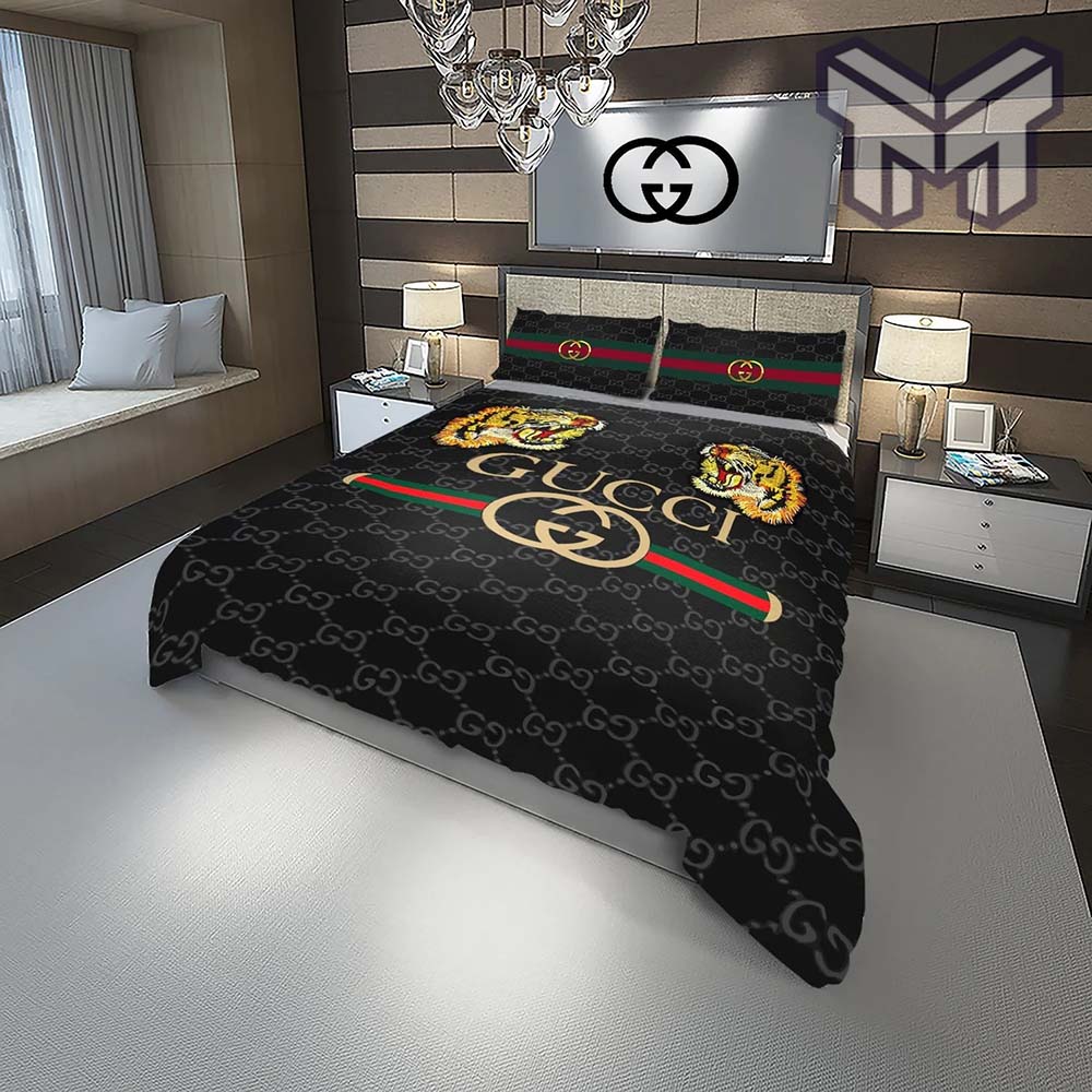 Gucci Bedding Set, Gucci Tigers Fashion Logo Luxury Brand Premium Bedding Set Home Decor