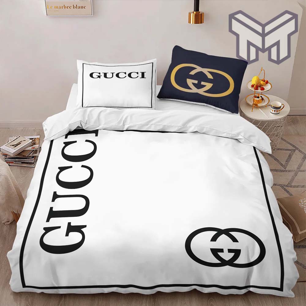 Gucci Bedding Set, Gucci Amazing White Fashion Logo Luxury Brand Bedding Set Home Decor Information: