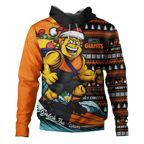 GWS GIANTS Hoodie Christmas Holiday Santa Rides The Waves