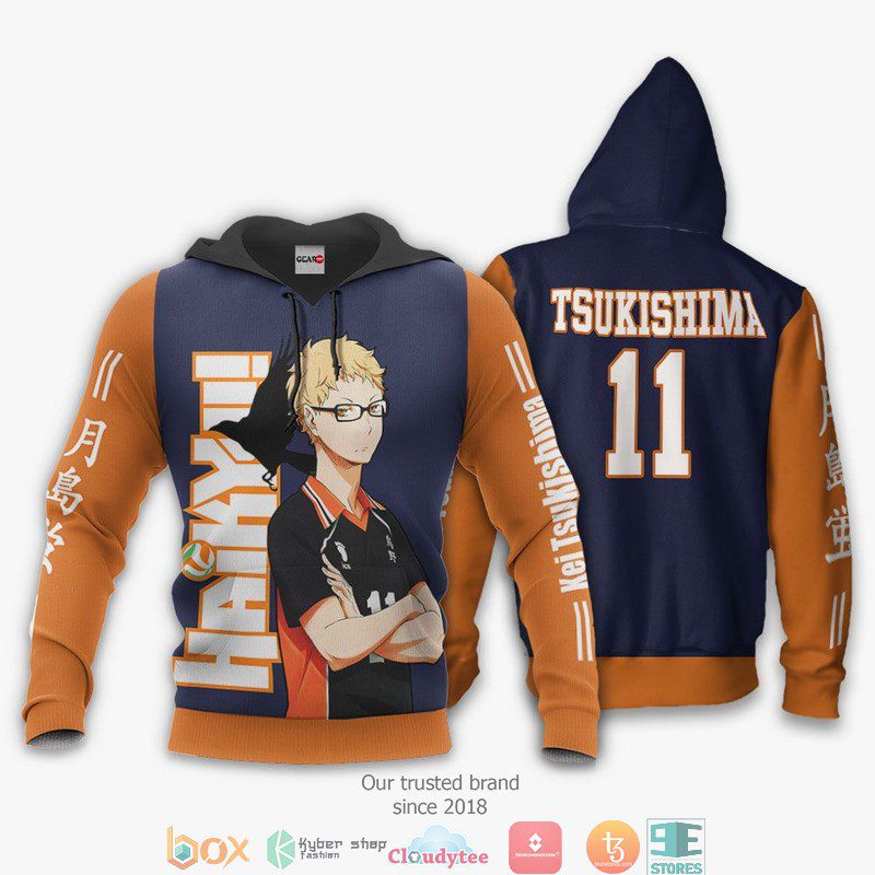 HAIKYU Kei Tsukishima Number 11 Pullover Hoodie Product Features Along with its Kei Tsukishima graphics, this cozy pullover hoodie features super-soft midweight material. Material: 95% polyester + 5% spandex. The fabric is durable and resistant to wrinkles, shrinking and mildew. Hood with drawstrings. Long sleeve. Front pouch pocket. Midweight hoodie suitable for moderate temperatures. Features...