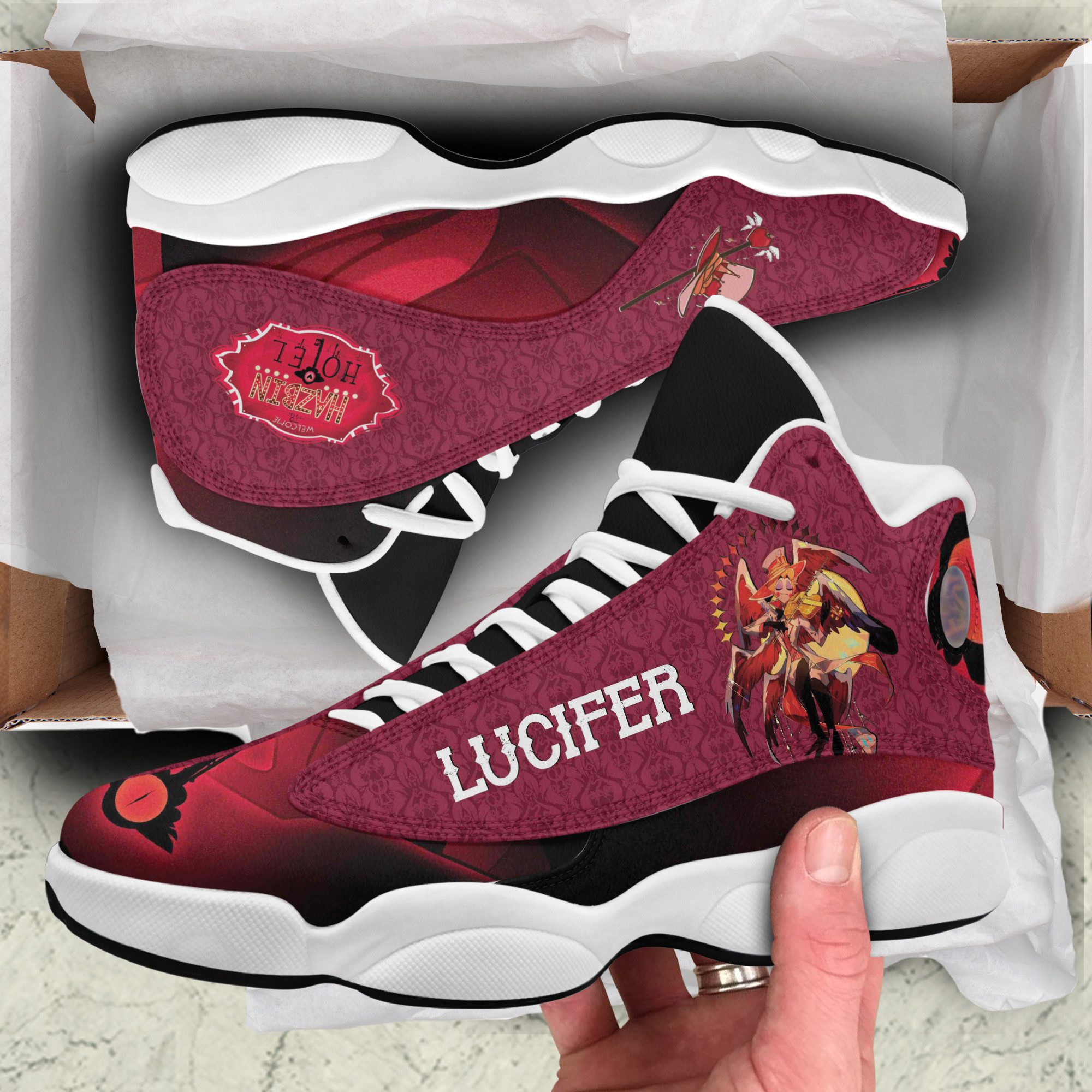 The Hazbin Hotel AJ13 Sneakers are a limited-time release, so don’t miss your chance to own a piece of this iconic series. Order yours today and step into the underworld in style!