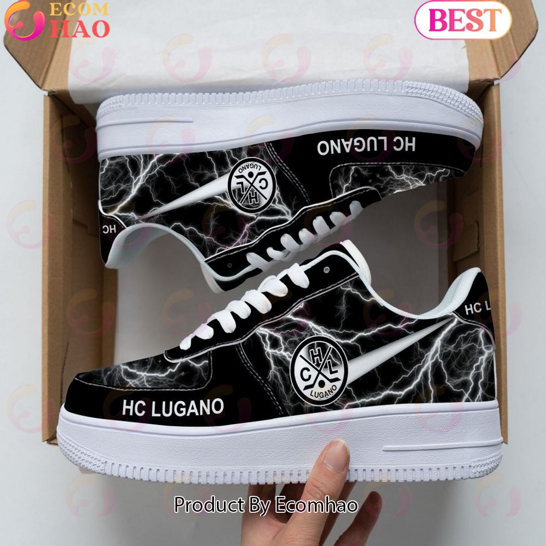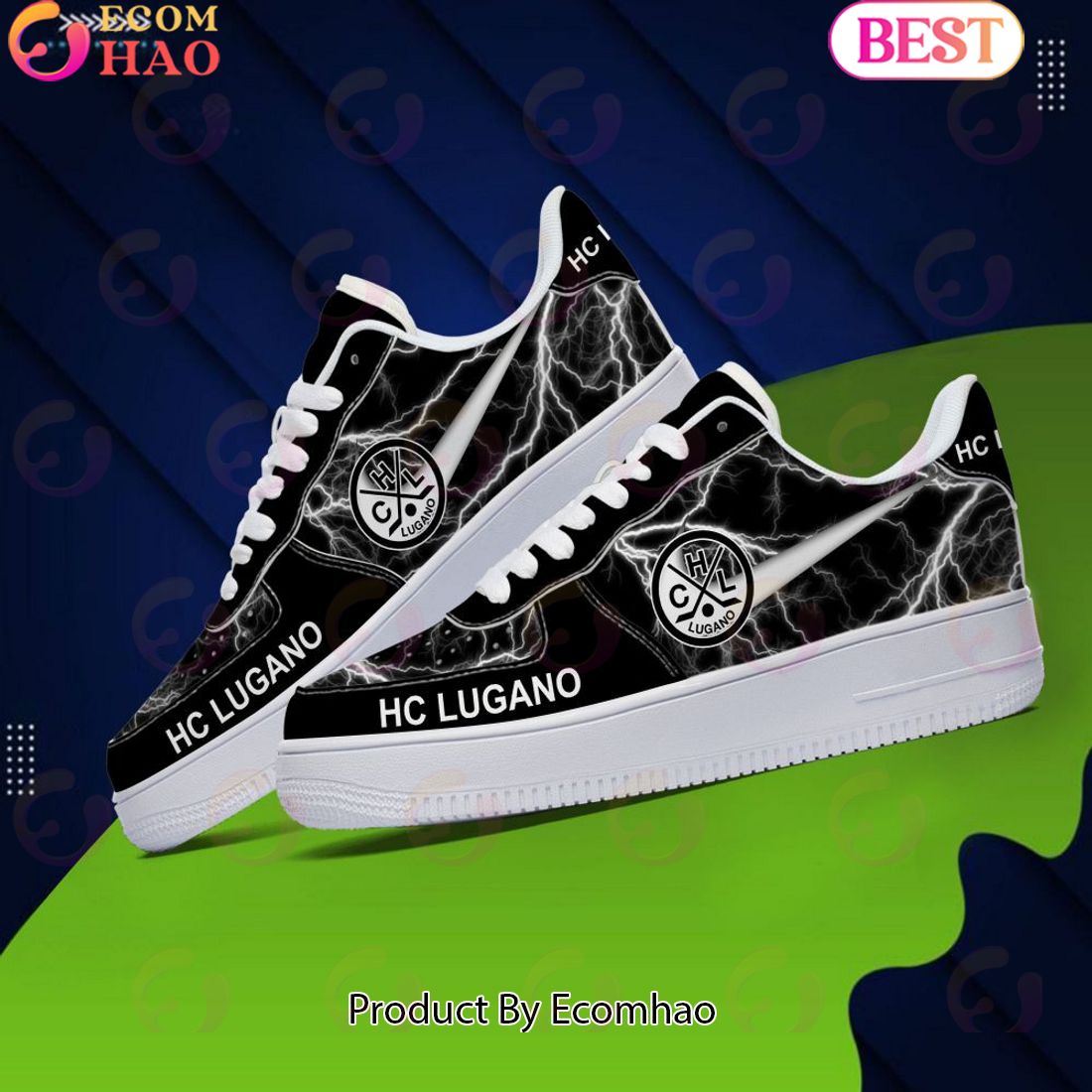 HC Lugano Thunder Design Air Force 1 The HC Lugano Thunder Design Air Force 1 is a stylish and unique pair of shoes designed with form and function in mind. It features a slick black upper with accents of bright white to give it an eye-catching appearance. The Thunderbolt design is featured on both the...