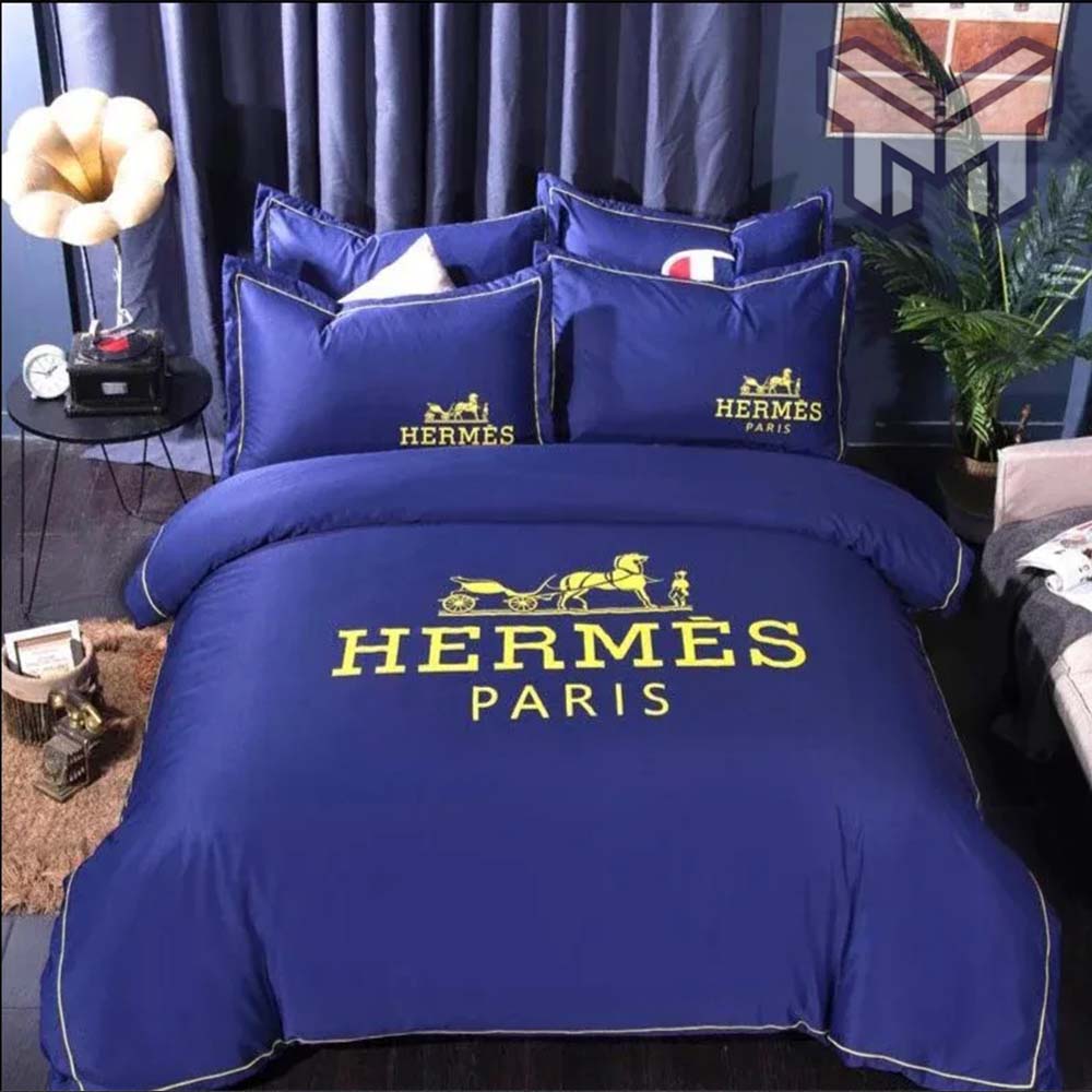 Hermes Bedding Set, Hermes Blue Luxury Brand Bedding Set Bedspread Duvet Cover Set Home Decor, The Best Quantity and Service: Elevate your bedroom decor with the exquisite Hot Hermes Bedding Set, a true symbol of luxury and sophistication. This stunning bedding set, adorned with the renowned Hermes logo, features a captivating shade of blue that...