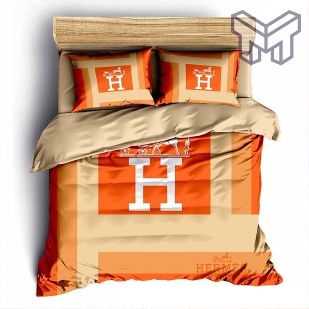 Hermes Bedding Set, Hermes Fashion Luxury Brand Bedding Set Bedspread Duvet Cover Set, The Best Quantity and Service: