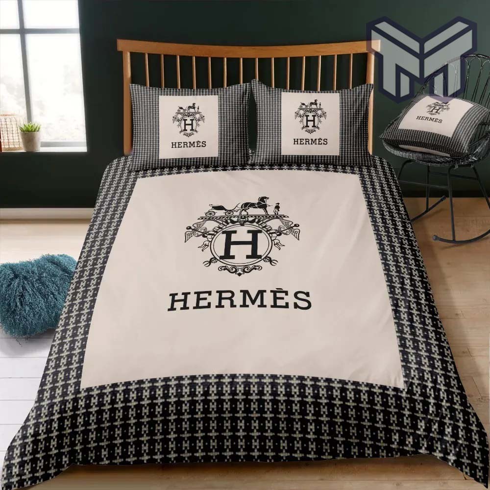 Hermes Bedding Set, Hermes New Logo Hot Luxury Brand Bedding Set Bedspread Duvet Cover Set Home Decor, The Best Quantity and Service: