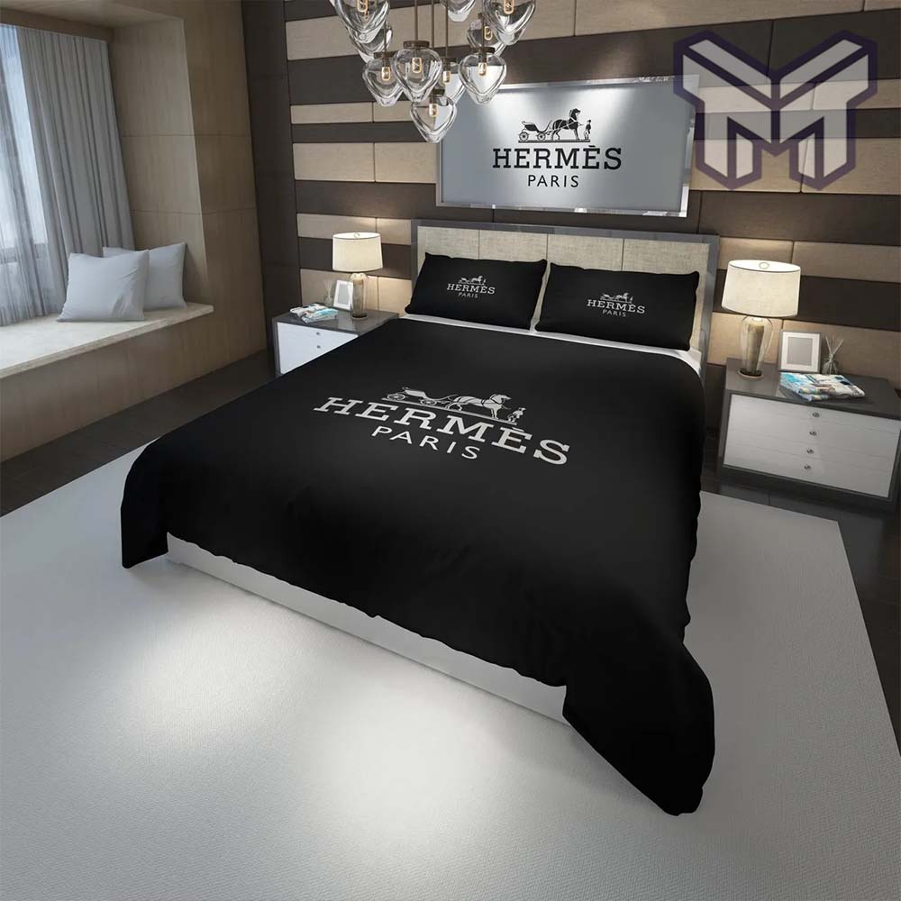 Hermes Bedding Set, Hermes Paris Black Fashion Luxury Brand Premium Bedding Set Home Decor, The Best Quantity and Service: