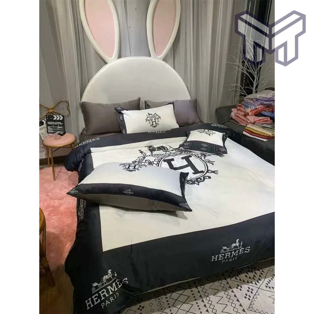 Hermes Bedding Set, Hermes Paris Black Luxury Brand Bedding Set Duvet Cover Set Home Decor, The Best Quantity and Service: