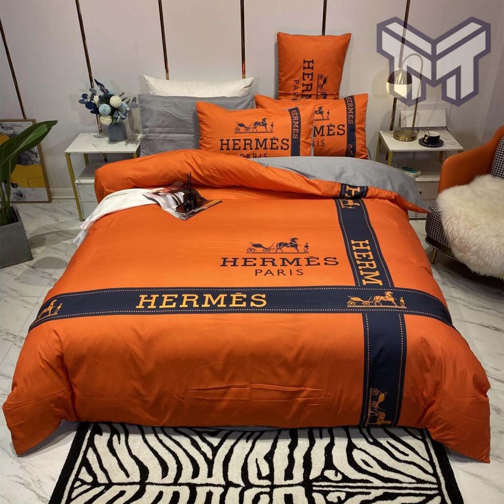 Hermes Bedding Set, Hermes Paris Luxury Brand High End Bedding Set Home Decor, The Best Quantity and Service:
