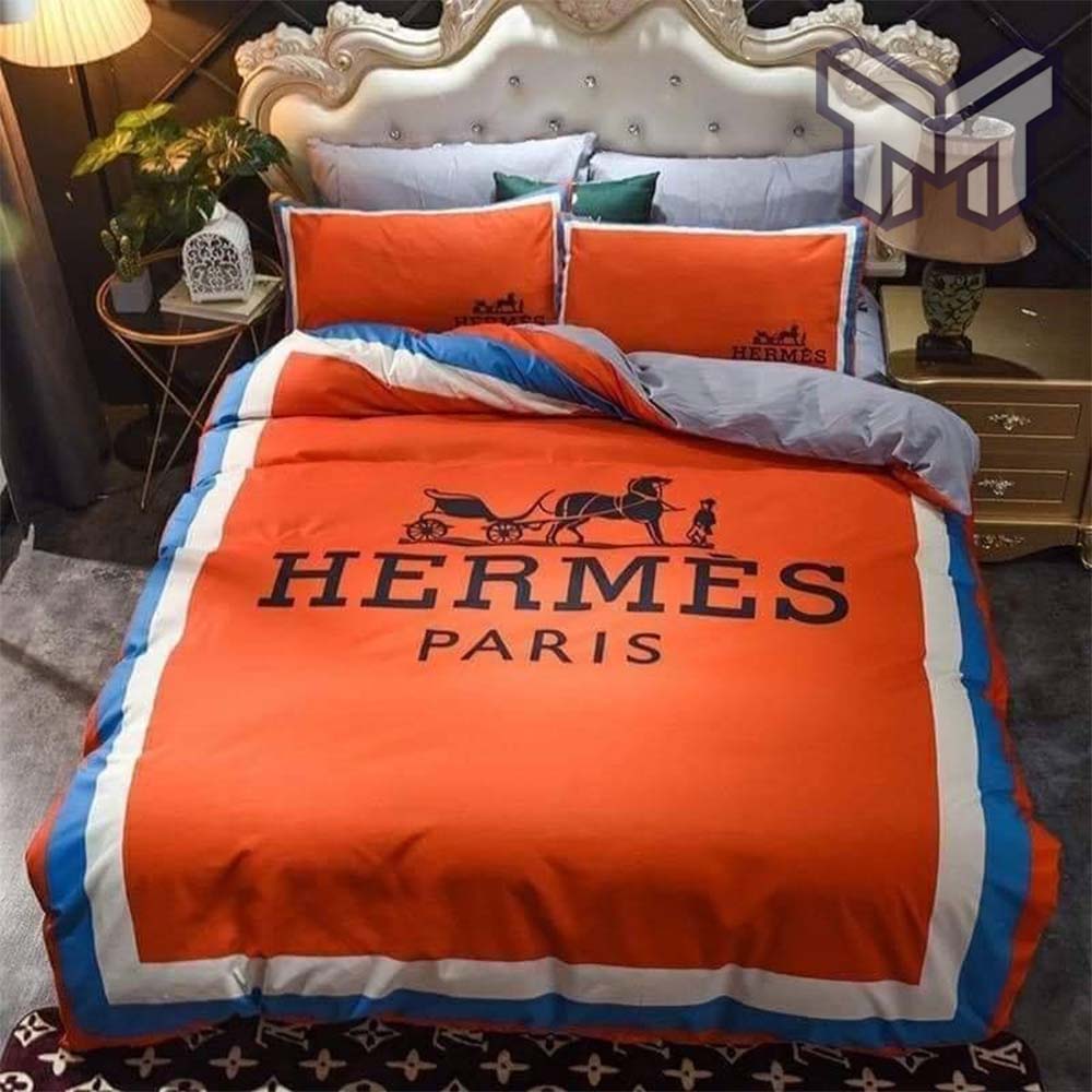 Hermes Bedding Set, Hermes Paris Premium Logo Luxury Brand Bedding Set Home Decor, The Best Quantity and Service:
