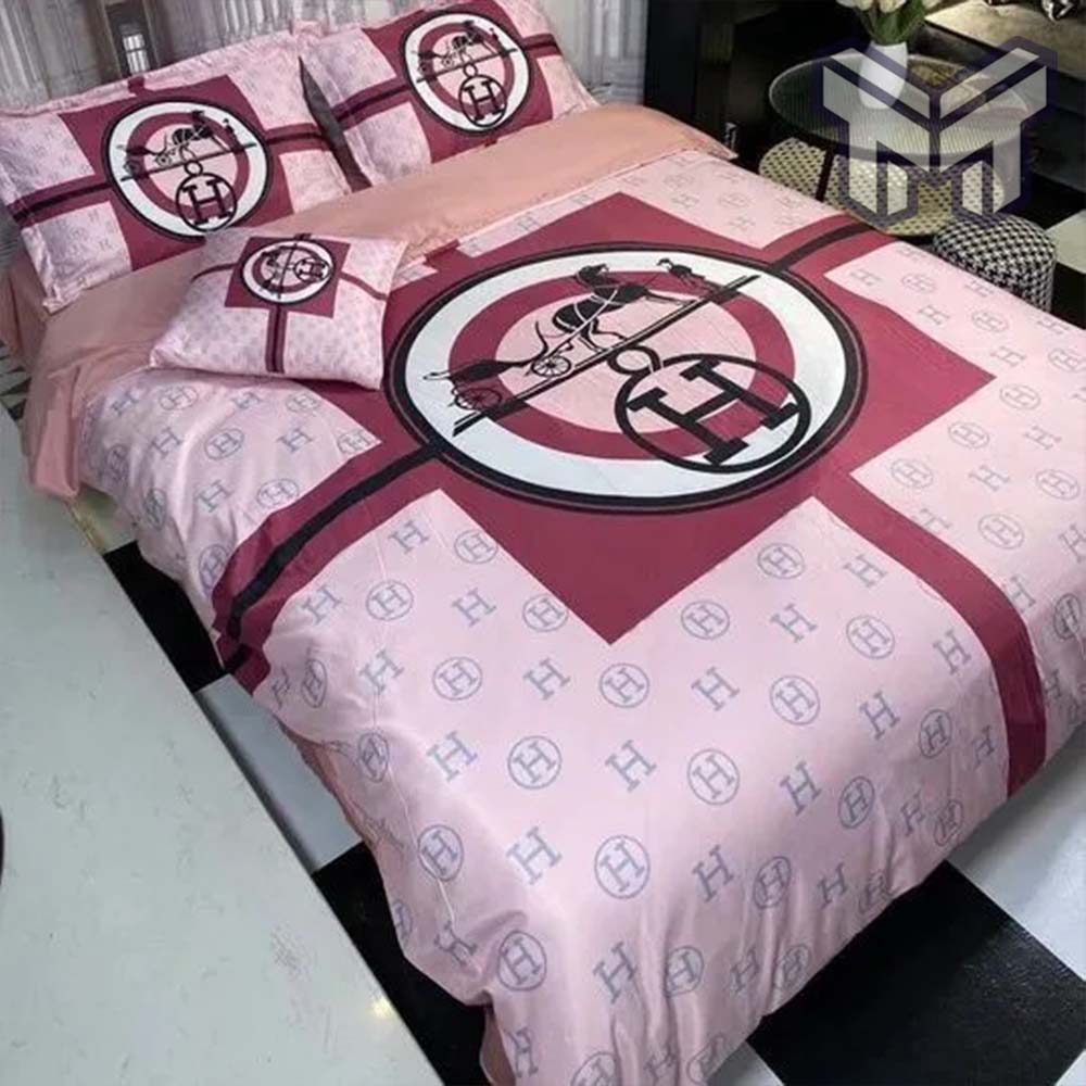 Hermes Bedding Set, Hermes Pinky Luxury Brand Premium Bedding Set Bedspread Duvet Cover Set Home Decor, The Best Quantity and Service: The Hot Hermes Bedding Set in a charming shade of pinky is a true embodiment of luxury and sophistication, making it an exceptional choice for those seeking to elevate their bedroom decor. This exquisite...