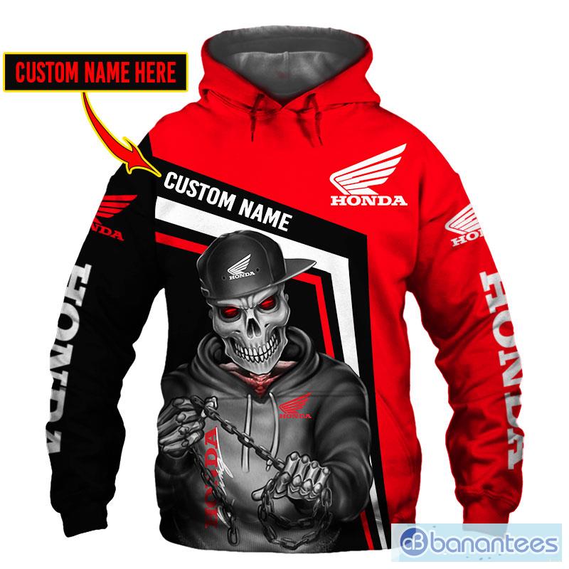 Honda Motorcycles Custom Name Skull Pullover Hoodie